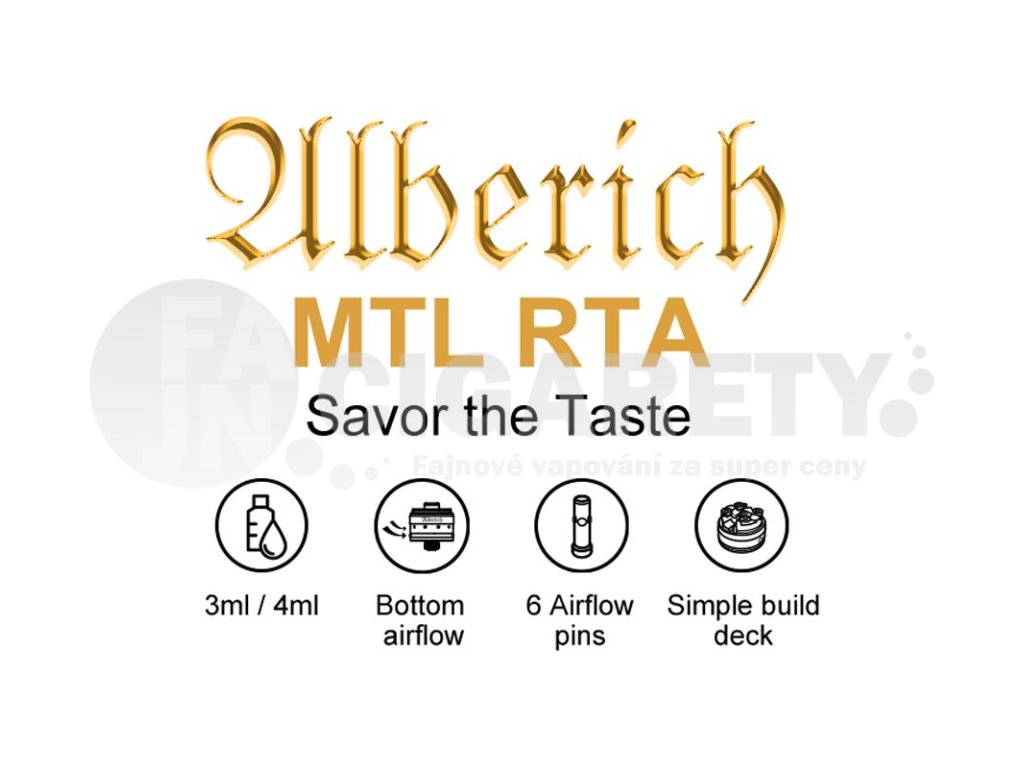 Vapefly Alberich MTL RTA je vynikající volbou pro všechny milovníky chutného MTL potahu. Díky širokým možnostem nastavení airflow a pečlivě navržené vnitřní konstrukci zprostředkuje ideální tuhost potahu s maximálním důrazem na výrazný hit a prokreslenou chuť. O co nejlepší přenos páry do úst se potom postará podlouhlý úzký náustek s uchycením typu 510.
