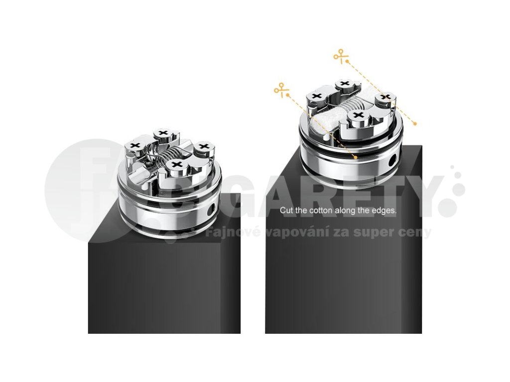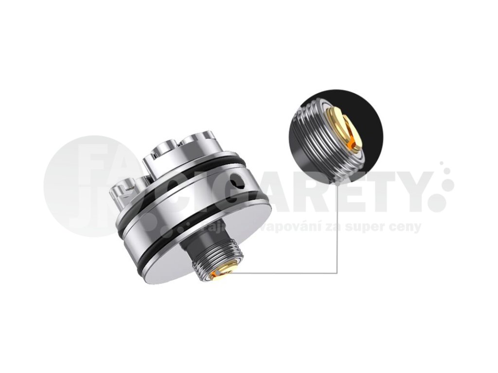 Uvnitř atomizéru na vás čeká praktická základna se dvěma protilehlými sloupky, do kterých je možné nainstalovat jednu spirálku. Jedná se o základnu v provedení single coil, s instalací si poradí naprosto každý milovník DIY. Instalace zabere jen pár vteřin. Základna navíc nabídne také dostatek prostoru pro snadné osazení vatou.