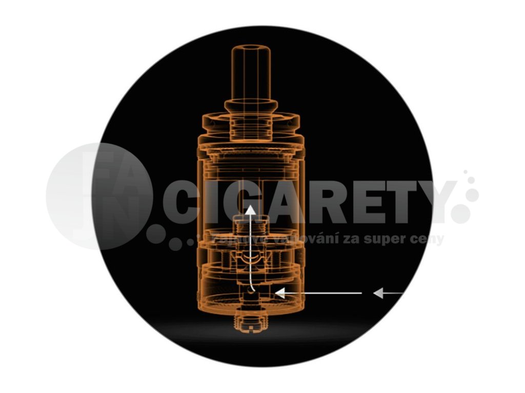 Systém pro přísun vzduchu se nachází ve spodní části. Přímo pod základnou se nachází kroužek pro regulaci, celkový vstup vzduchu pak můžete ještě dotáhnout pomocí vzduchových vložek, které se instalují do závitu 510 ve spodní části. V balení na vás čekají vložky s průměry 0,8 mm, 1,0 mm, 1,3 mm, 1,6 mm, 2,0 mm a 2,5 mm, možnosti jsou tak velice rozsáhlé.