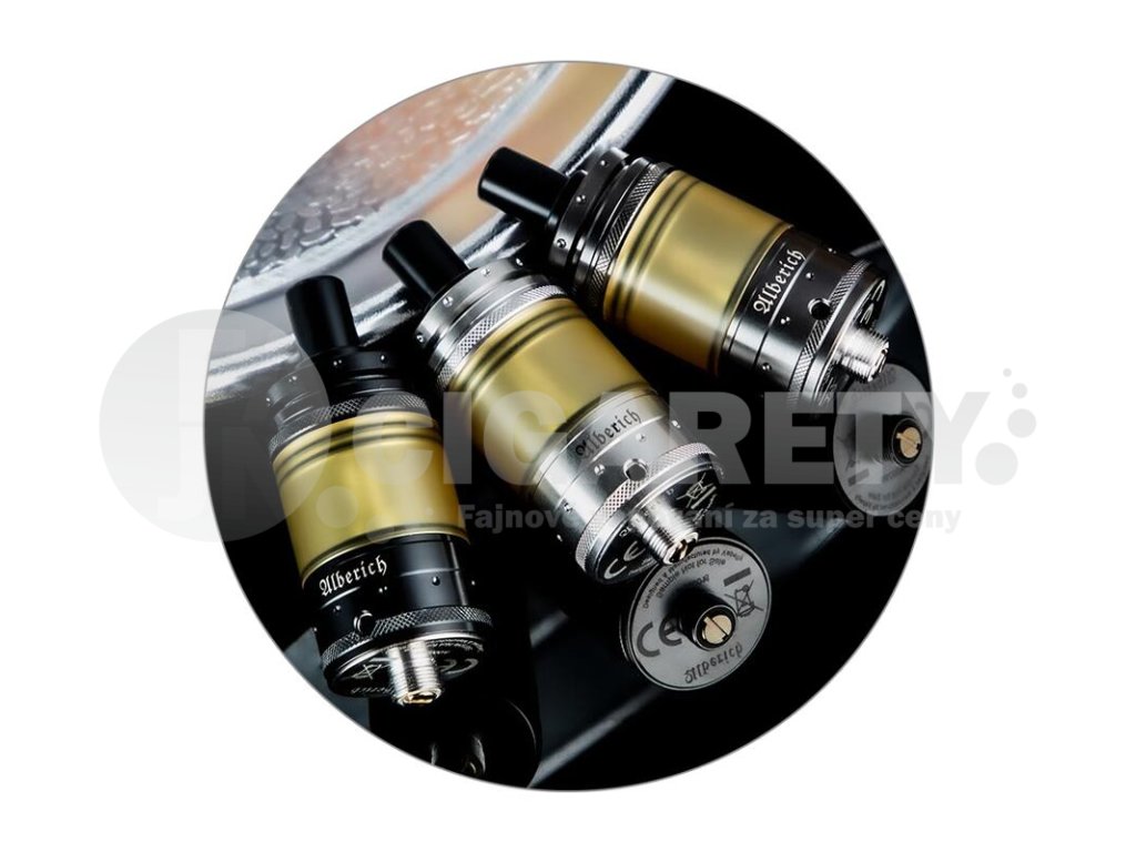 Vapefly Alberich MTL RTA je kvalitně zpracovaný atomizér s nádherným designem a stylovým kovovým tělem. Na pohled působí robustním, přesto však také elegantním dojmem. Jeho délka činí 53,4 mm a průměr se zastavil na 22 mm. Díky těmto rozměrům si bude rozumět s drtivou většinou modů na současném trhu. Samozřejmostí je potom závit typu 510 ve spodní části.