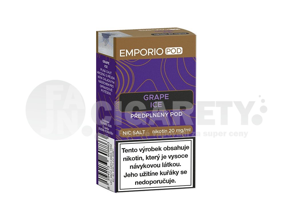 Osvěžující ledové hroznové víno... Předplněné cartridge EMPORIO POD obsahují 2ml SALT liquidu o síle nikotinu 20mg. Poměr 50VG/50PG