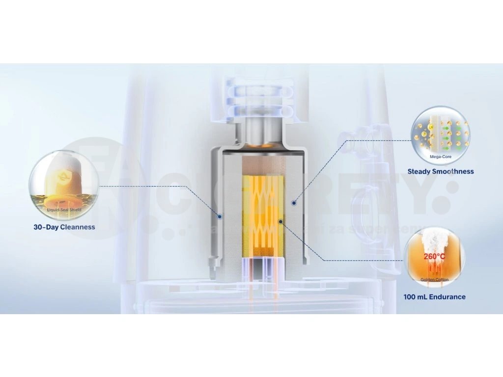 Inovativní konstrukceCartridge VooPoo Argus Pod Top Fill V2 využívá nejnovější technologii iCOSM Code 2.0 s revolučním Mega-Core jádrem a Liquid-Seal Shield systémem. Mesh žhavící hlava s odporem 0,7Ω je obklopena patentovanou zlatou vatou Golden Cotton pro maximální absorpci a tepelnou odolnost do 260°C, což zajišťuje dlouhodobou spolehlivost a výjimečnou kvalitu vapování. |