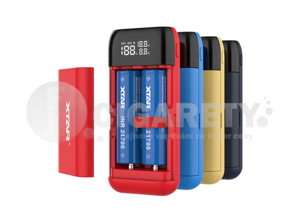 XTAR PB2S je hybridní nabíječka baterií a powerbanka v jednom. Slouží pro dobíjení běžně dostupných článků, skrz které je možné zároveň napájet další zařízení. Uvnitř nabíječky se nachází dva individuální nabíjecí sloty. Lze dobíjet baterie typu 18650, 18700, 20700 a 21700. Přední kryt nabíječky disponuje displejem, na kterém budete mít přehled o aktuálním proudu, napětí a procentuálním stavu nabíjeného článku.