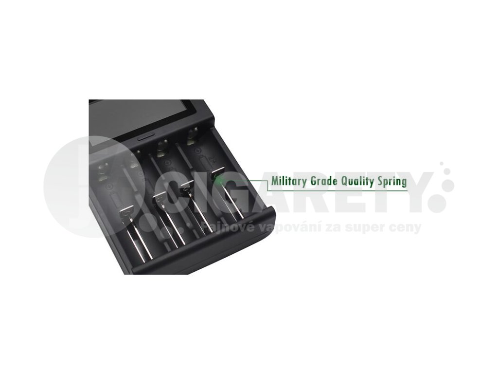 Nabíječka Golisi I4 podporuje dobíjení baterií s délkou mezi 32 - 70 mm a průměrem do 32 mm, je proto vhodná pro všechny oblíbené typy baterií, jako jsou 18650, 20700 a 21700. Ve vrchní části nabíječky se nachází přehledný a veliký displej, který vás neustále informuje o stavu dobíjených článků, neunikne vám tak žádný údaj. Nabíječka je vyrobena z vysoce kvalitních materiálů a efektivně odvádí teplo během nabíjení. Nabídne také automatické a inteligentní používání, baterie tak stačí pohodlně vložit do slotu a nabíječka začne nabíjet dle dostupných parametrů okamžitě po vložení. V balení se nachází samotná nabíječka a USB kabel pro její připojení k adaptéru. Adaptér není součástí balení, nabíječka je kompatibilní s drtivou většinou síťových adaptérů na trhu s optimálními parametry DC 5V / 2A.