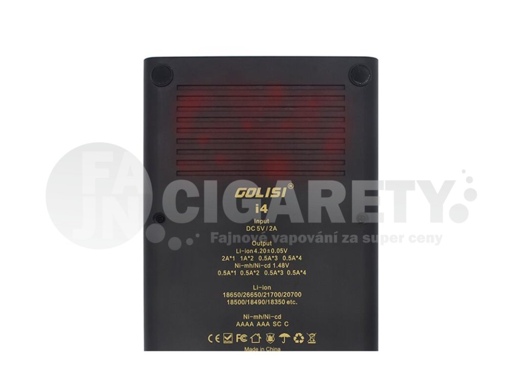 Golisi I4 je multifunkční nabíječka pro řadu článkových baterií a pro běžně užívané baterie v elektronických gripech. Jedná se o upgradovanou a vylepšenou verzi původní nabíječky Golisi S4. Nabíječka Golisi I4 nabídne hned čtyři nabíjecí sloty. Při nabíjení čtyř baterií souběžně je možné dobíjet proudem 0,5 A v každém slotu, pokud však budete narychlo potřebovat dobít alespoň jednu baterii, postačí připojit jednu dobíjenou baterii do pravého slotu nabíječky, tento slot disponuje funkcí rychlého dobíjení proudem až 2 A.