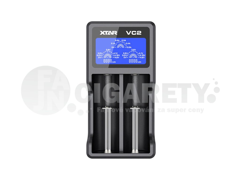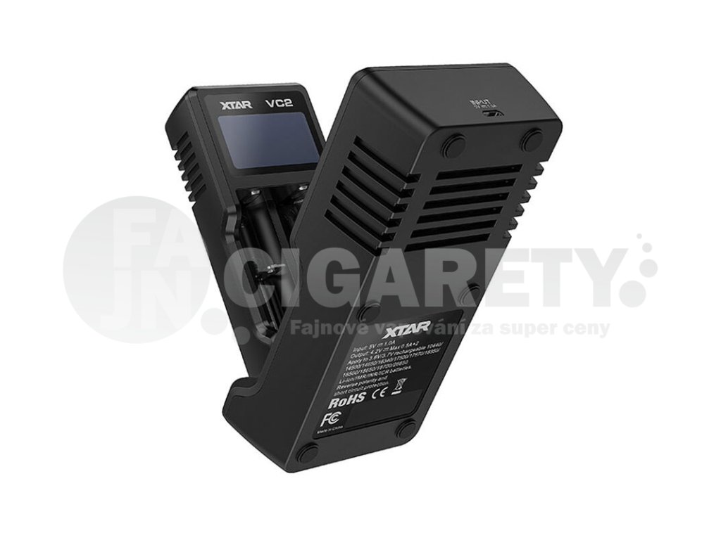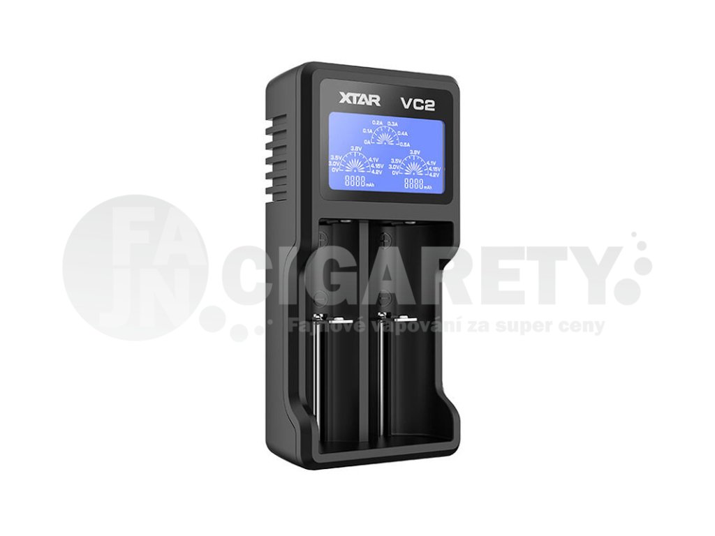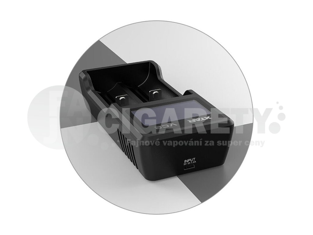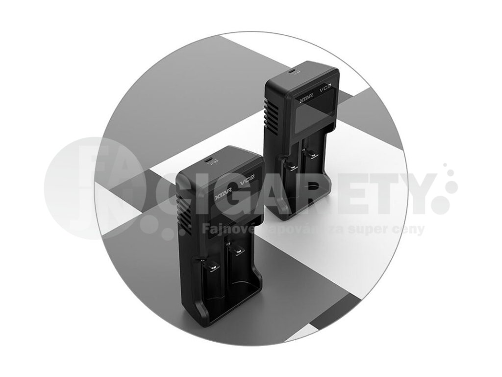 XTAR VC2 je kvalitní multifunkční nabíječka článků a dalších baterií od výrobce XTAR. Disponuje dvěma individuálními nabíjecími sloty. Lze nabíjet dvě baterie současně, případně jednu baterii samostatně. Nabíječka XTAR VC2 podporuje většinu běžně dostupných článků typu Li-ion, IMR, INR, ICR. Ve vrchní části nabíječky se nachází velký a přehledný LCD displej, který zobrazuje všechny potřebné parametry během nabíjení. Na displeji se zobrazuje dobíjecí proud baterií, napětí baterií a kapacita baterií. V případě kompletního dobití článku se tento údaj zobrazí přímo na displeji. Nabíječka VC2 také nabídne funkci zobrazení chybových hlášek, pokud se během používání na displeji zobrazí NULL, jedná se o vadnou baterii, v případě zobrazení ERR je baterie vložena obráceně, nebo došlo k jejímu zkratu. Tato funkce ušetří váš čas během nabíjení.
