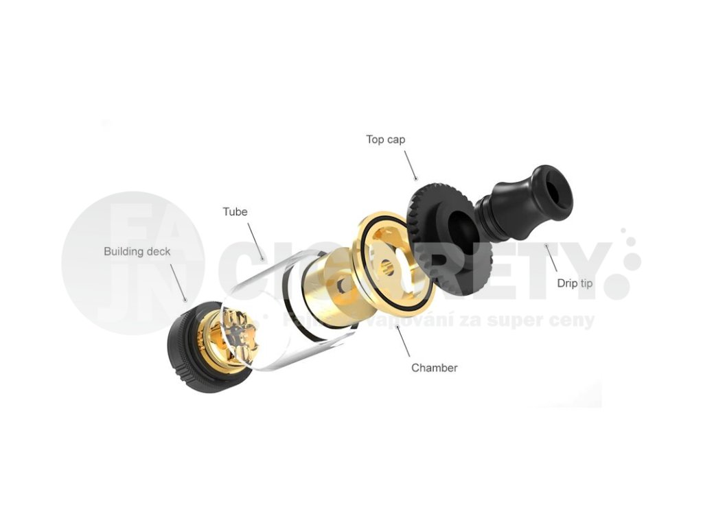 Objem tanku činí 3 ml, atomizér si tak poradí s mnohahodinovým používáním bez nutnosti dalšího plnění. Jestliže však na plnění dojde, tak vás potěší přítomnost vrchního systému plnění. Jednoduše tak odšroubujete vrchní uzávěr a během pár vteřin doplníte e-liquid zpět do tanku.