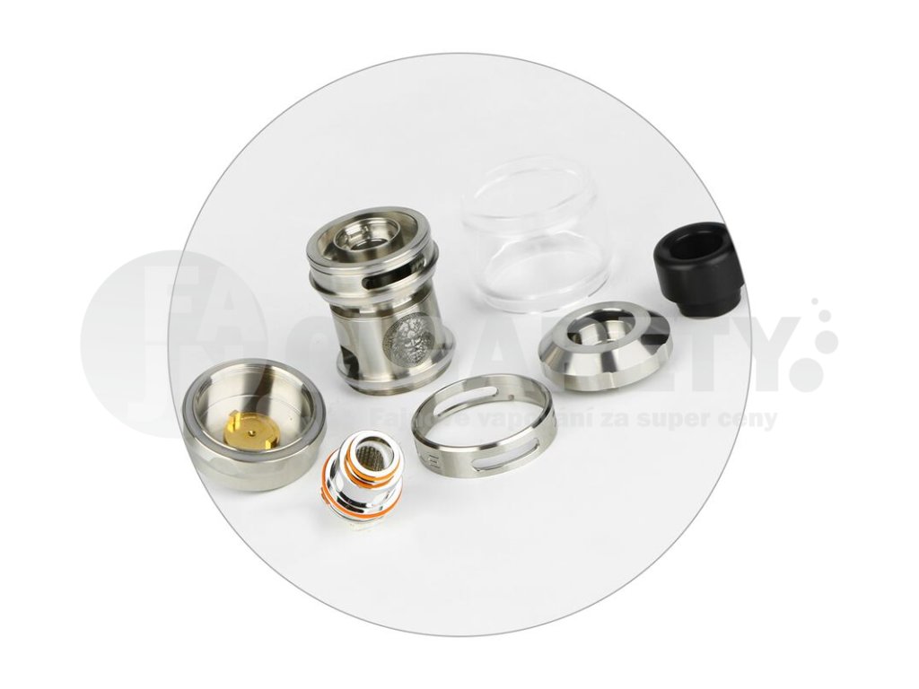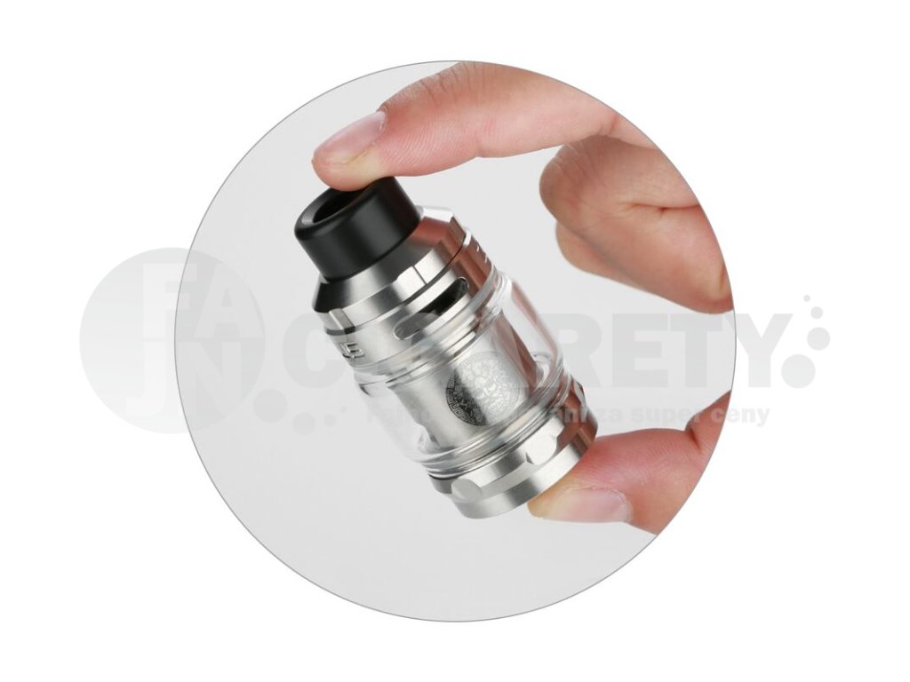 O obrovskou produkci páry a využití na cloud chasing se potom postará nízkoprofilový náustek s uchycením typu 810, který najdete ve vrchní části atomizéru. Náustek si můžete také pohodlně vyměnit za svůj vlastní náustek se stejným typem uchycení. Uvnitř atomizéru se potom nachází komora pro samotné žhavící tělísko. K modelu Zeus Subohm Tank byly představeny dvě nové žhavící hlavy. První z nich nese název Zeus Z1 Mesh a disponuje odporem 0,4 ohm. V jeho jádru najdete mesh pletivo pro rychlý náběh žhavení a obrovskou produkci chutné páry. Druhé tělísko v balení se jmenuje Zeus Z2 Mesh a nabídne ještě větší produkci páry díky odporu 0,2 ohm. Pokud hledáte špičkový atomizér pro přímé potahování, GeekVape Zeus Subohm Tank vám zprostředkuje jedinečný zážitek.