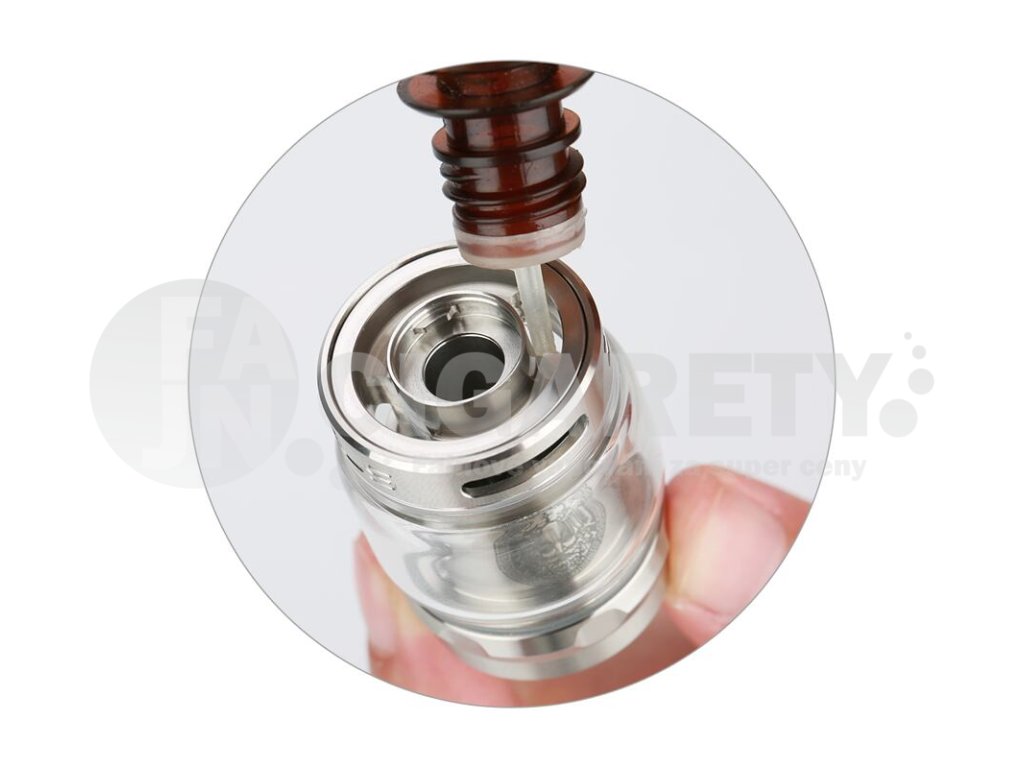Došel vám e-liquid v tanku a potřebujete atomizér rychle doplnit? Žádný problém. V tomto případě vás potěší přítomnost jednoduchého systému vrchního plnění. Stačí tedy pootočit vrchním uzávěrem, který následně odejmete a můžete začít plnit. Celý proces plnění zabere jen několik málo vteřin. Následně se můžete opět věnovat pohodovému vapování a užívat si velkou tvorbu páry.