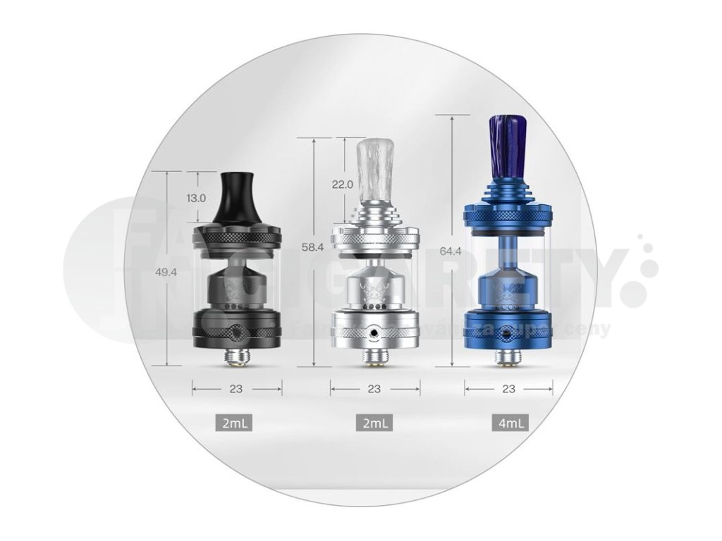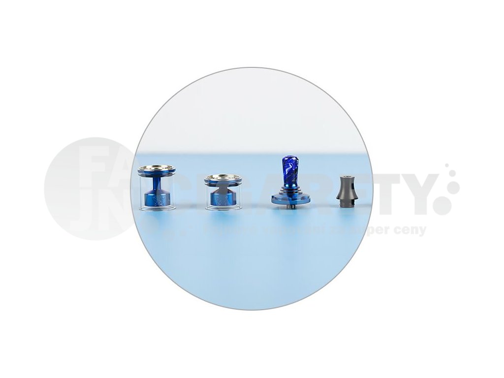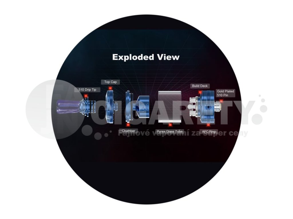 Krásné dílenské zpracování a kvalitní kovová konstrukce nejsou jedinými hlavními výsadami celého atomizéru. Mimo precizně navržený design myslel výrobce také na bezpečnost, z toho důvodu osadil vrchní i spodní část atomizéru vystouplým kovovým kroužkem, který lépe chrání atomizér proti případnému pádu.