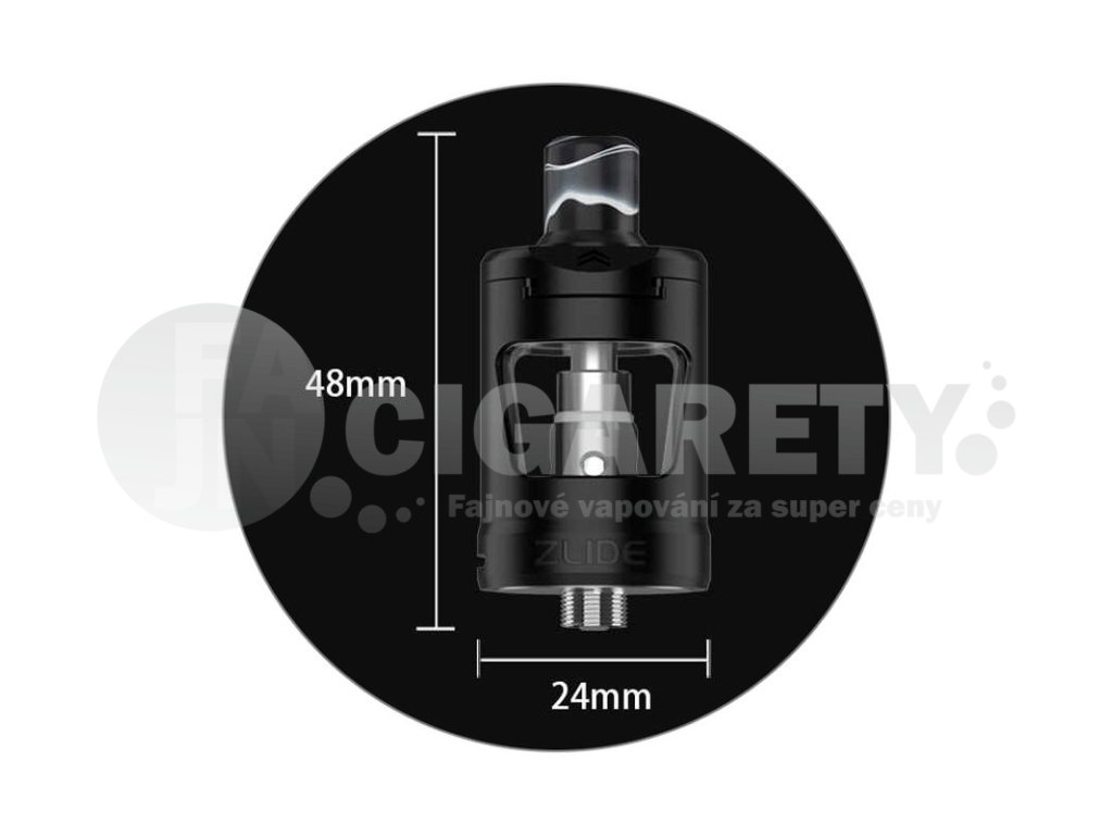 Innokin Zlide Tank je elegantně zpracovaný atomizér vhodný pro začínající vapery a nenáročné uživatele. Nabídne celokovovou konstrukci a provoz na tovární žhavící hlavy ze série Z-Coil. K dispozici je široká nabídka žhavících hlav se zaměřením hlavně na klasické šlukování, samostatně se však dají dokoupit také hlavy pro DL vapování. Délka atomizéru činí jen 48 mm a průměr se zastavil na 24 mm. Ve spodní části se nachází závit typu 510, díky čemuž je atomizér kompatibilní s drtivou většinou modů na dnešním trhu. O přísun vzduchu do atomizéru se postará spodní regulovatelný systém airflow.