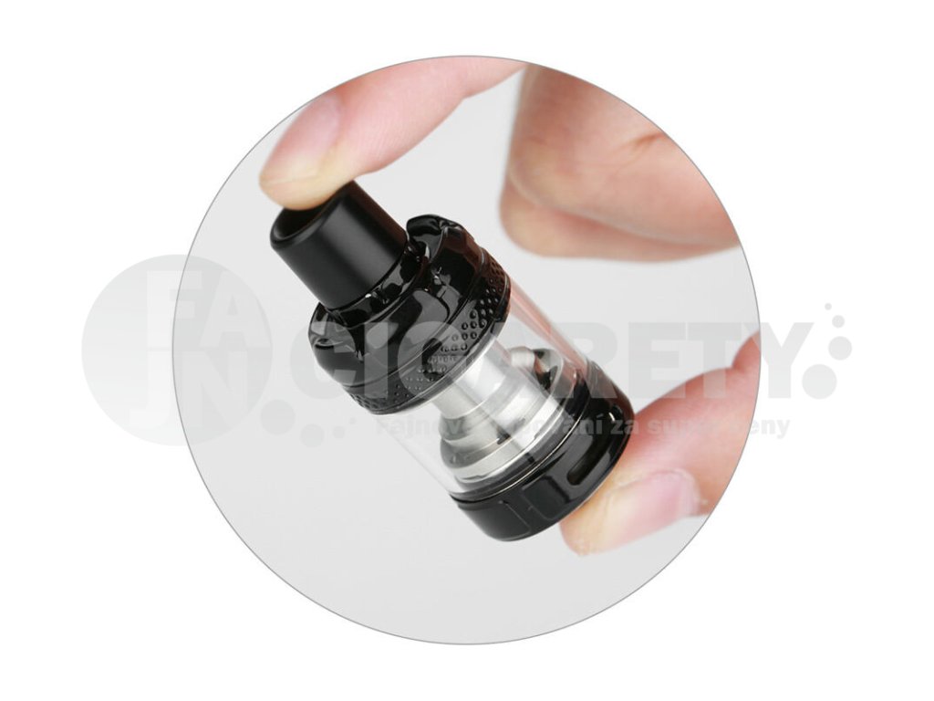 Samotný tank nabídne objem 2,5 ml, pohodově vám tak vystačí na několikahodinový provoz bez nutnosti plnění. Pokud však přeci jen dojde na plnění, budete potěšeni. Clearomizér je opatřen systémem výsuvného vrchního plnění. Jednoduše zatlačte na vrchní uzávěr a vysuňte ho do strany. Následně můžete začít plnit. Proces plnění zabere jen několik málo sekund, poté se už můžete naplno věnovat vapování. Clearomizér Joyetech NotchCore láká také na jednoduchou údržbu díky plně rozebíratelné konstrukci. Většinu velkých součástí si jednoduše rozeberete a můžete čistit samostatně, čímž prodlužujete celkovou životnost clearomizéru.