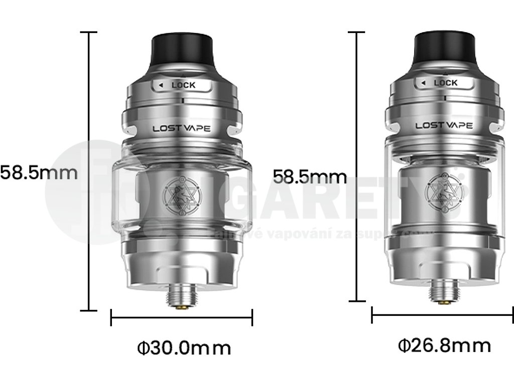 Parametry a specifikaceVýrobce: Lost Vape Objem: 5 ml (bubble sklo) / 3 ml (rovné sklo) Odpor žhavících hlav v balení: 0.15Ω / 0.3Ω Materiál spirálek: Mesh pletivo Styl potahování: DL (Direct Lung - přímé potahování) Způsob plnění: Horní výsuvné plnění Závit: 510 Regulace přívodu vzduchu: Ano, horní airflow Rozměry: 58,5 mm x 26,8 mm s bubble sklem 30 mm Materiál: Nerezová ocel SUS303 + borosilikátové sklo Barva: Silver (Stříbrná) Legislativa: Tento výrobek je určen pro náplně bez obsahu nikotinu.