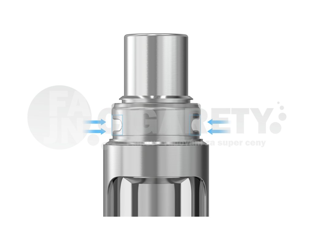 Ve vrchní části Clearomizeru Cubis D19 se nachází i vylepšený přívod vzduchu pro optimální prožitek z vapingu (Air komory). Celý Clearomizer je plně rozebíratelný a vyrobený z nerezové oceli a Pyrexu (Laboratorní sklo).