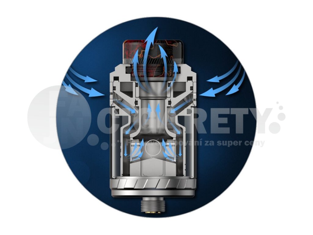 Boční panely s řadou vzduchových otvorů zajistí přímé a rovnoměrné ofukování spirálky během každého potahu. Výsledná chuť je proto mimořádně výrazná, plná a bohatá. Díky propracovanému systému cirkulace vzduchu si z atomizéru vychutnáte naprosto jakýkoliv e-liquid včetně složitých dezertových a ovocných mixů.
