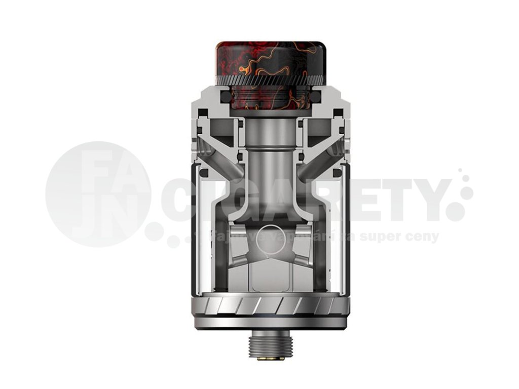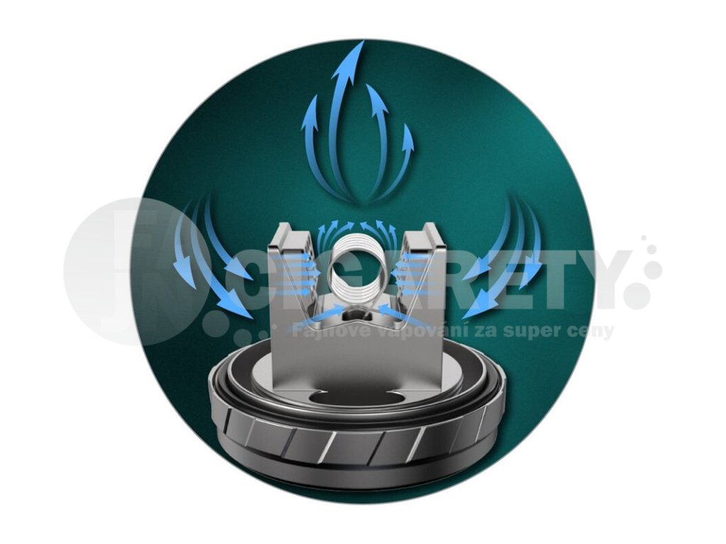 V jádru se potom nachází bezsloupková základna pro instalaci jedné spirálky s postranními děrovanými panely pro efektivní přívod vzduchu přímo ke spirálce. Díky těmto otvorům je spirálka ofukována ve velice krátké dráze, díky čemuž vykouzlíte z atomizéru maximálně plnou a výraznou chuť. Systém regulace přívodu vzduchu je umístěn ve vrchní části, je plně regulovatelný a nabídne široké možnosti nastavení tuhosti potahování. Do detailu vypiplaný atomizér ocení hlavně milovníci vzdušnějších forem potahu, hodí se zejména na středně tuhý DL vaping. Nabídne jednoduchou a přívětivou uživatelskou obsluhu, krásné zpracování a efektivní konstrukční vlastnosti pro zisk chutné a husté páry.