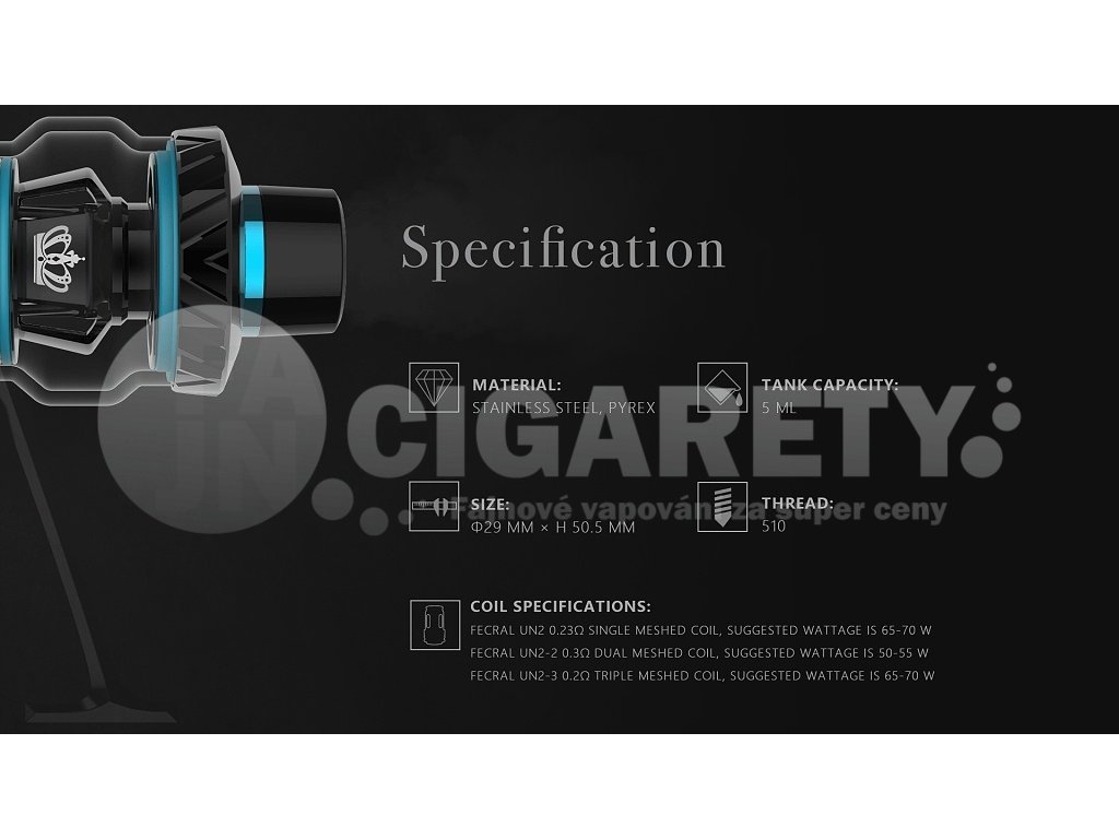 Výkonný nízkoodporový Clearomizér z nerezové oceli a pyrexu, vhodný především pro DL vapování. Objem 5ml. Podpora žhavících hlav Uwell UN2, UN2-2, Plynulá regulace přívodu vzduchu (Airflow), horní plnění e-liquidem, rozměry 50,5mm x 29mm, závit 510. 2x žhavící hlava v Setu.