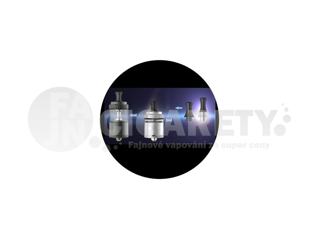 Výrobce se při návrhu zaměřil jak na potřeby občasných MTLkařů, tak také na uživatele, kteří rádi cestují. Tělo proto nabídne hned dvě varianty objemu. Pokud preferujete kompaktnější rozměry, můžete použít menší pyrexové sklo s objemem 2 ml, jestliže hledáte MTL atomizér s velkou kapacitou tanku, osadíte ho rozšiřující sadou pro zisk objemu až 6 ml. Vandy Vape BSKR V3 (B3) nabídne zkrátka pro každého něco.