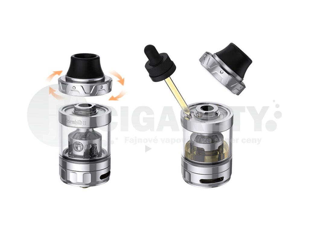 Vapefly Kriemhild II Sub Ohm Tank je nádherný clearomizér s minimalistickým zpracováním, který přichází v tradičnějších barevných variantách, jež ladí s kterýmkoliv modem. Tělo je vyrobeno z kombinace nerezové oceli a pyrexu. Atomizér se velice rychle stane ozdobou jakéhokoliv modu, díky rozměrům 51,2 x 25 se jedná o jeden ze středně velkých clearomizérů.