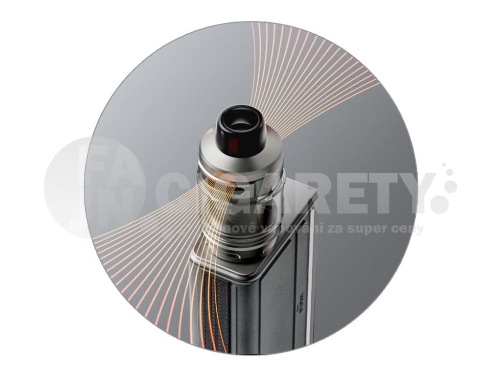 Ve vrchní části atomizéru se nachází propracovaný systém přívodu vzduchu s plynulou regulací pro nastavení optimální tuhosti potahování. Díky hornímu systému je navíc zaručena lepší cirkulace vzduchu uvnitř atomizéru a s tím spojené lepší výsledky při vapování a bohatší chuť při každém potahu.