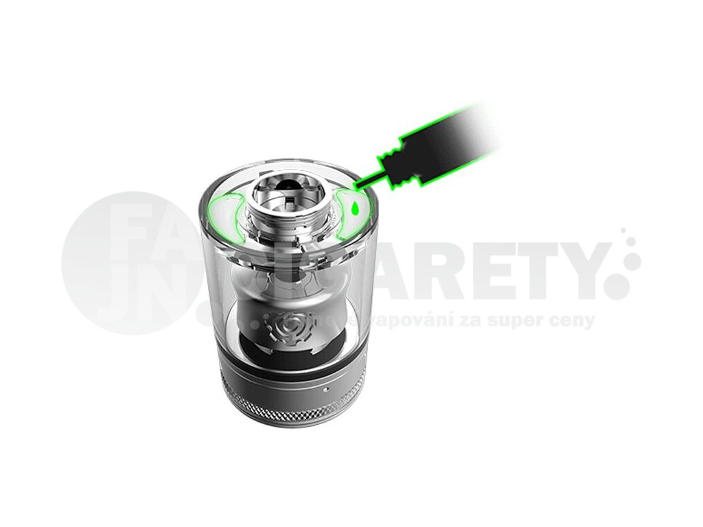 Samotný tank disponuje velkým objemem 3 ml. Bez problému si tak poradí s intenzivním potahováním bez potřeby dalšího plnění. V případě potřeby je potom atomizér vybaven vrchním systémem plnění. Po odšrobouvání vrchní části s náustkem tak můžete začít plnit.