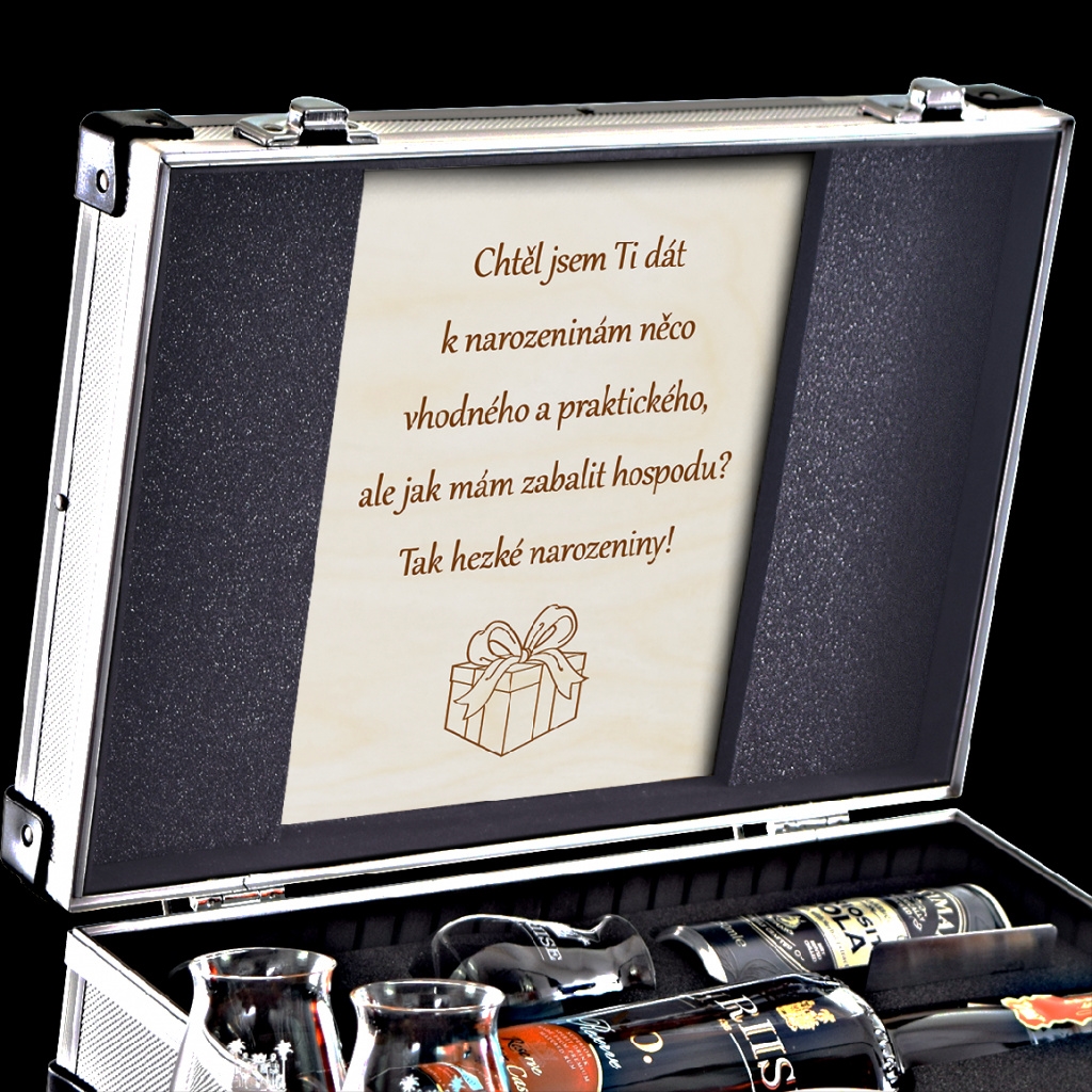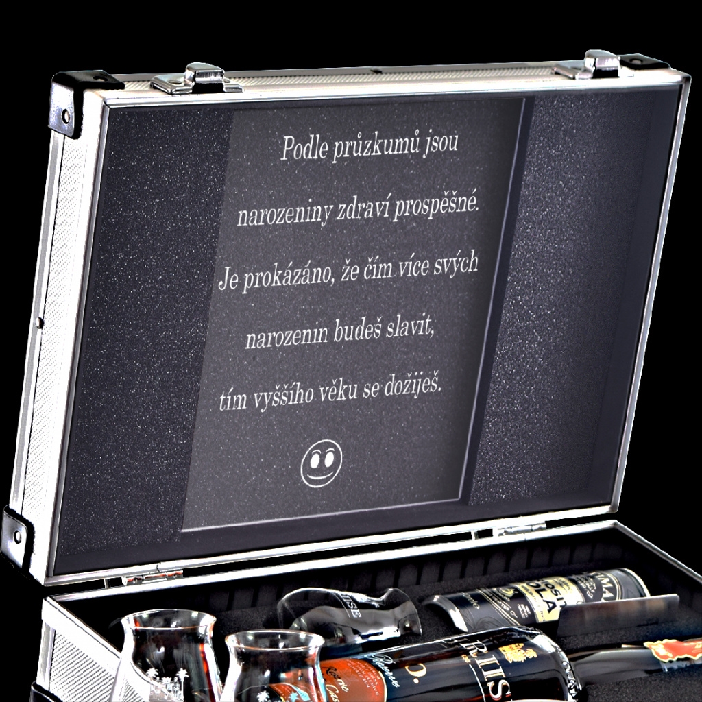Kvalitní dárkový hliníkový kufr DARBOX vykouzlí úsměv na rtu nejen každému muži. Darujte jedinečné překvapení. Uvnitř dárkového kufru je prostor pro blahopřání, vzkaz, logo, či obrázek. Buďte kreativní a připravte obdarovanému jedinečné překvapení. Vytvořte originál, který nemá nikdo jiný na světě! Prostě parádní kousek. Vaše nápady rádi umístíme do víka dárkového kufru. Překvapit můžete gravírováním na stylové plexi, nebo dřevěné desce, nebo oblíbenou fotografií doplněnou jedinečným přáním.
