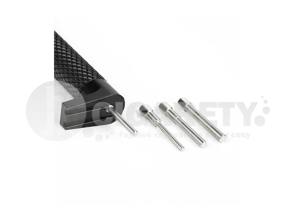 LVS 4v1 Coil Jig je praktický nástroj, díky kterému si můžete namotat vlastní spirálku do své RBA, RTA, nebo RDA žhavící hlavy, a to dokonce s různými průměry vnitřního oka. Vše je velmi jednoduché, a celá výroba spočívá v několika málo krocích. Vyberete si jeden ze čtyř obsažených nástrojů s vaším vybraným průměrem, nasadíte ho do válcovité základny, která zároveň slouží jako rukojeť, nasadíte speciální hlavu s výřezy pro odporový drát a jednoduchým otáčením vytvoříte vlastní spirálku.