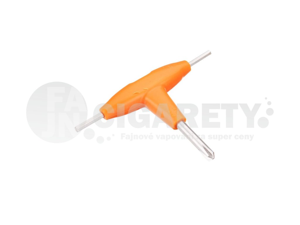 Mini šroubovák s T rukojetí vhodný pro servis DIY atomizérů. Kombinovaný typ - křížový/inbus.