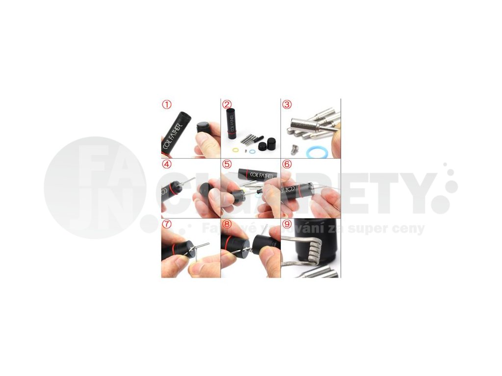 Coil Father Coiling Kit V2 Coil Jig je profesionální nástroj pro tvorbu vlastních spirálek ze všech typů odporových drátů. Do hlavního nástroje umístíte drát, který omotáte kolem trnu a následně vyrobíte vlastní spirálku pomocí menšího vrchního nástroje. V balení najdete hned čtyři hroty s různými průměry pro namotání spirálek s průměrem 2mm, 2,5mm, 3mm a 3,5mm. Všechny součásti jsou vyrobeny z kvalitní nerezové oceli. S tvorbou spirálek si snadno poradí také začátečníci a nenároční uživatelé.