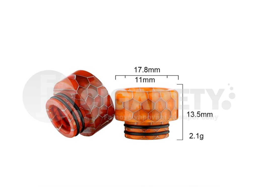 Náustek Sailing Snakeskin Pattern 810 SL213 je kompatibilní s clearomizéry a atomizéry s uchycením náustku typu 810. Je vyroben z epoxidové pryskyřice (resinu). Jedná se o stylový doplněk vašeho atomizéru. Lze ho také použít v případě poškození stávajícího náustku. Vyniká zejména stylovým vzorem hadí kůže, každý kus je navíc zcela unikátní svým barevným provedením. Resin výborně izoluje teplo od spirálek a nezkresluje chuť výsledné produkované páry.