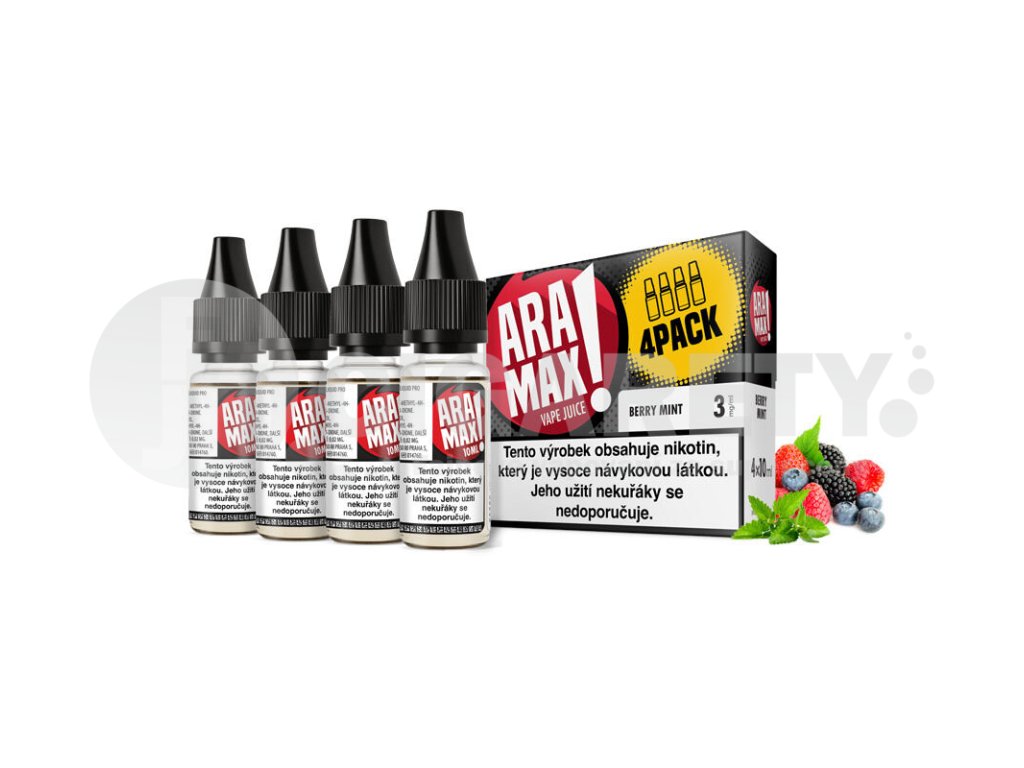 Aramax Berry Mint (Bobulovitý mix s mátou) 4x10ml intenzita nikotinu 6mg tabáková nálepka Kolek Q