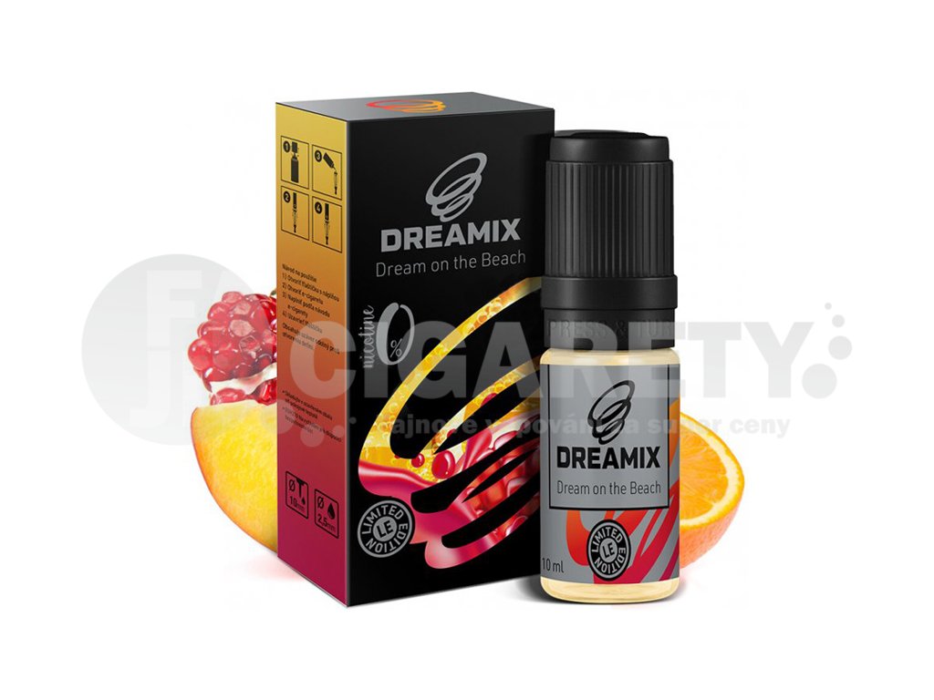 Dokonalou letní pohodu si jen těžko dovedeme představit bez řádně vychlazeného koktejlu. A právě proto s takovým přichází výrobce Dreamix. Dream on the Beach je dokonalý drink s vyváženým poměrem sladkokyselé grenadiny, sladkým pomerančovým džusem s trochou lahodné broskvové šťávy. Tento pečlivě připravený koktejl nikdy nezklame. Hotová náplň do elektronických cigaret českého výrobce s poměrem PG a VG 50/50. Velmi vhodná pro základní elektronické cigarety a oblíbené Pod systémy. Objem 10ml, obsah nikotinu 18mg/ml.