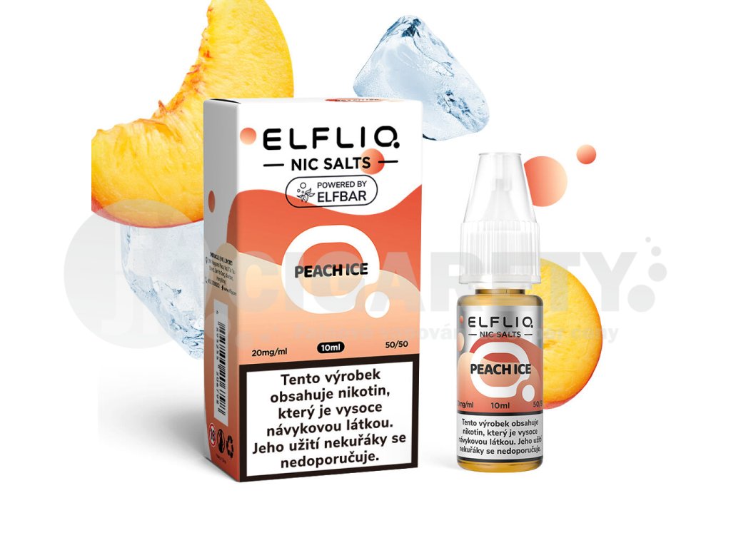 Elfliq Salt Peach Ice (Ledový broskvový džus) 10ml intenzita nikotinu 10mg tabáková nálepka Kolek Q