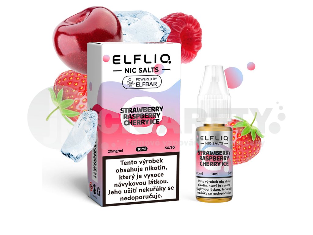 Elfliq Salt Strawberry Raspberry Cherry Ice (Chladivá jahoda s malinou a třešní) 10ml intenzita nikotinu 10mg tabáková nálepka Kolek Q