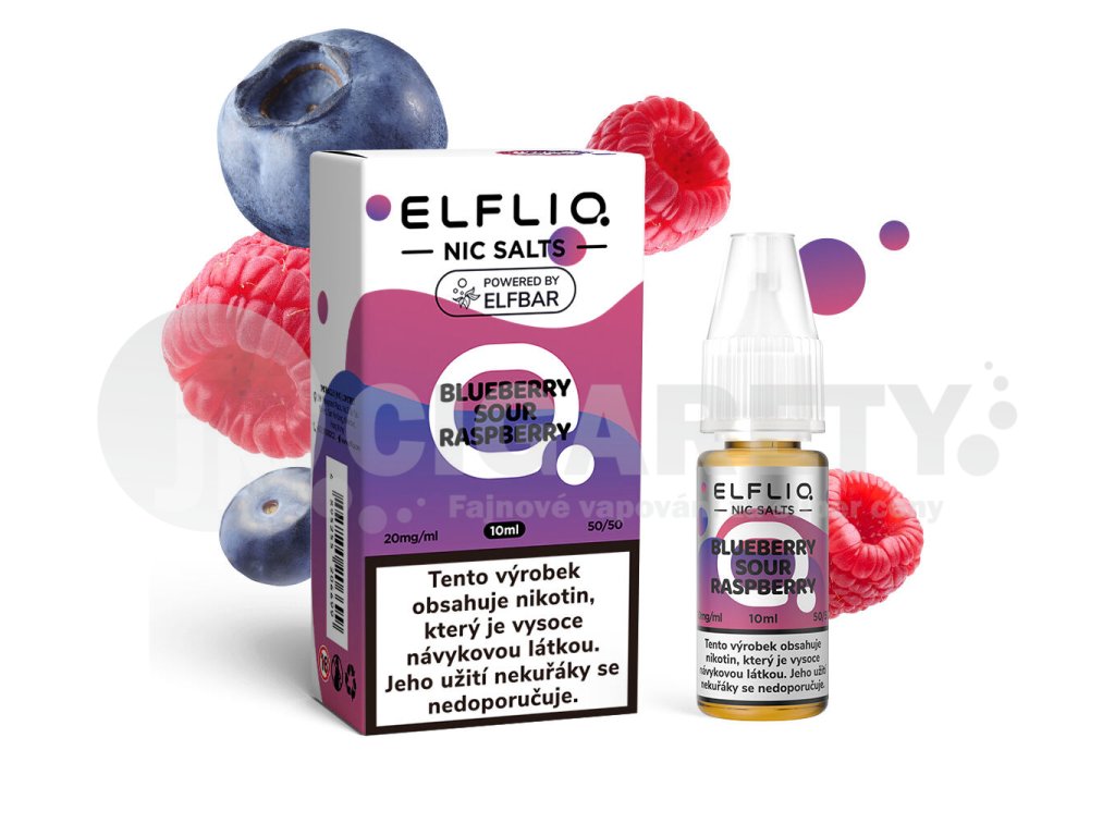 Elfliq Salt Blueberry Sour Raspberry (Borůvka a malina) 10ml intenzita nikotinu 20mg tabáková nálepka Kolek Q