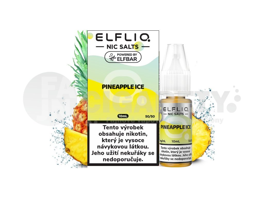 Skvělá chuť sladkého ananasu s ledem... Společnost Elf Bar je ve světě vapingu opravdovým fenoménem dnešní doby. Jejich jednorázové elektronické cigarety si našly miliony příznivců po celém světě, a to díky jejich nezapomenutelné a jedinečné chuti liquidu. Nyní si pro svoje fanoušky Elf Bar přichystal i samotný liquid ELFLIQ Nic SALT, který se od běžných liquidů odlišují tím, že má nižší PH a obsahuje nikotinovou sůl, díky které dochází k rychlejší a kvalitnější vstřebatelnosti = bez dráždivého pocitu v krku oproti klasickým liquidům. Vyvážený poměr 50VG/50PG je vhodný do všech typů elektronických cigaret.