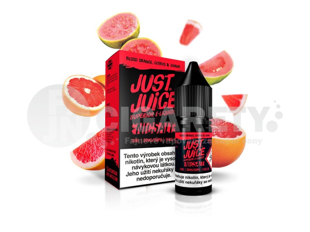 Just Juice Salt Blood Orange, Citrus & Guava (Červený pomeranč, citron a guava) 10ml intenzita nikotinu 11mg tabáková nálepka Kolek Q