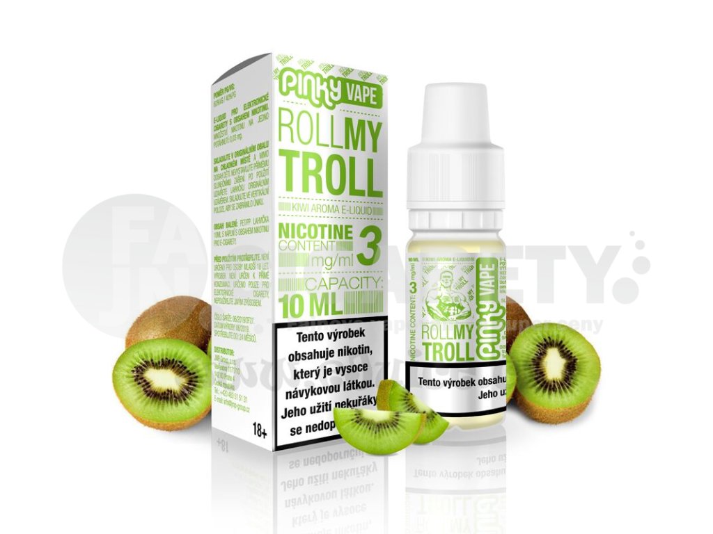 Pinky Vape Roll My Troll (Kiwi mix) 10ml intenzita nikotinu 0mg tabáková nálepka Kolek Q