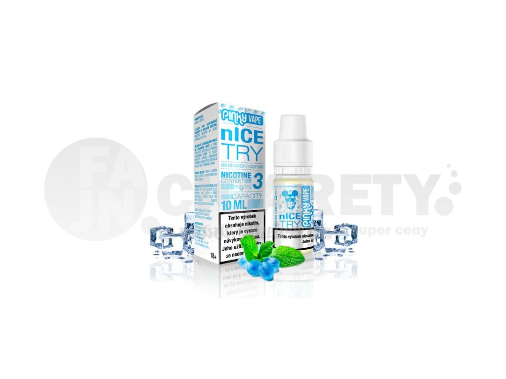 S další jedinečnou a osvěžující příchutí přichází výrobce Pinky Vape. Jedná se o náplň nIce Try. Ta vám zprostředkuje mimořádný chuťový zážitek díky bravurnímu spojení sladké a svěží ledové chuti. Jedná se o příchuť ledového bonbonu s chladivým sklovitým obalem a osvěžující sladkou náplní uvnitř. V příchuti se nesou jemné náznaky sladkého mentolu a chladivé coolady.