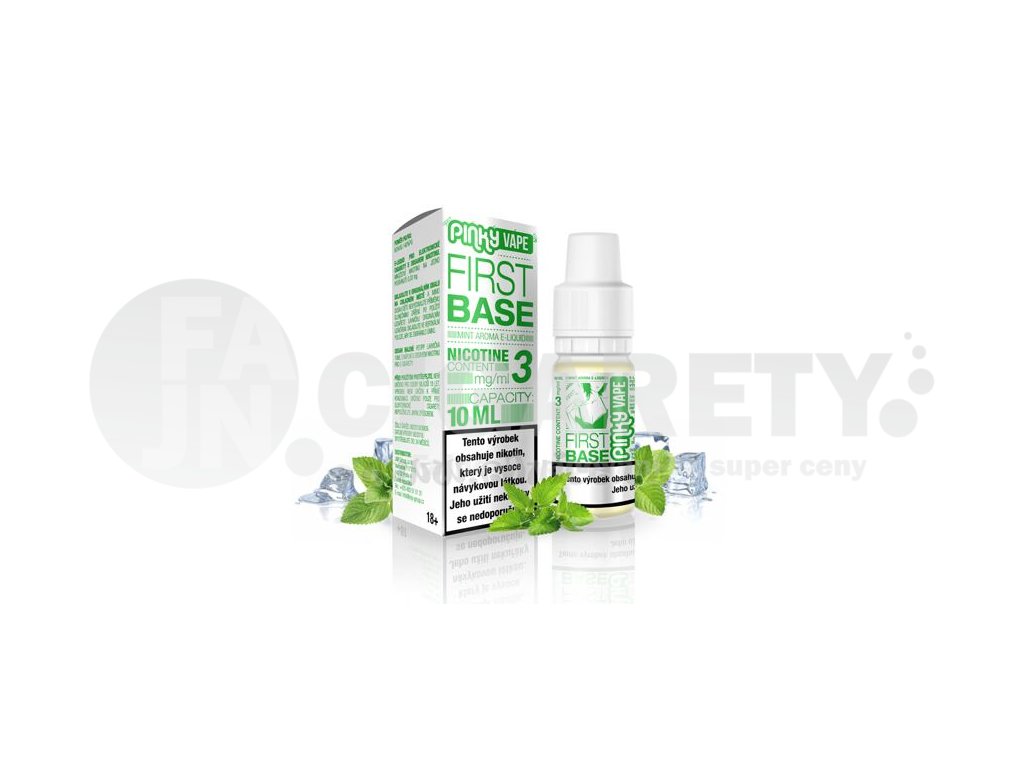 Pinky Vape First Base (Sladká máta) 10ml intenzita nikotinu 3mg tabáková nálepka Kolek Q