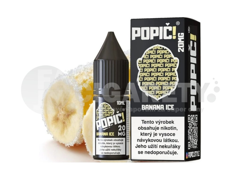 Sladká chuť zralého banánu spojená s ledovým osvěžením..... Liquidy POPIČ! jsou perfektně vyladěné chutě, které nabídnou jen to nejlepší z vapingu. Díky NicSaltu se můžete těšit na extrémně jemný vaping, který neobsahuje nepříjemný nikotinový hit a s obsahem nikotinu 20mg/ml stačí úplně každému, ať už pokročilému, či začátečníkovi.