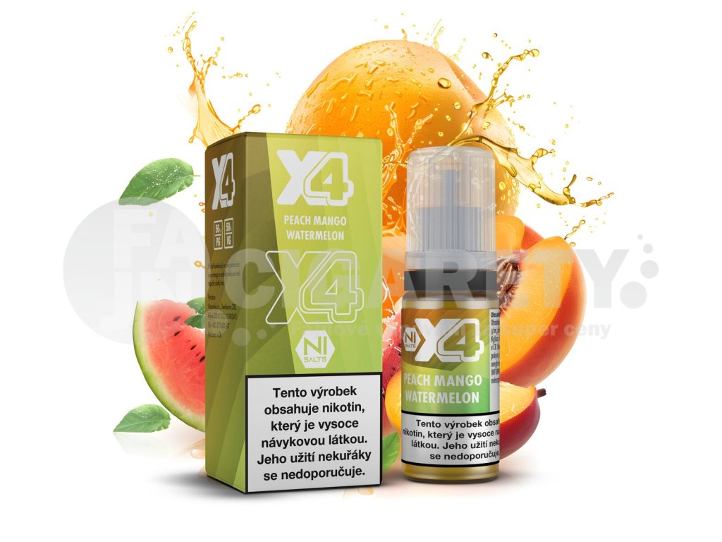 X4 Bar Juice Peach Mango Watermelon (Mango a vodní meloun) 10ml intenzita nikotinu 20mg tabáková nálepka Kolek R