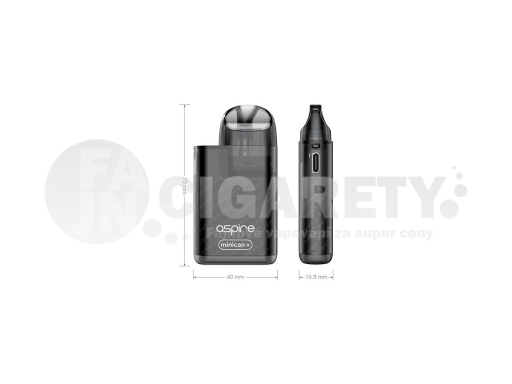 Výrobce Aspire navazuje modelem Aspire Minican Plus Pod Kit na svůj populární model Minican, přidává však několik vylepšení v čele s velkou kapacitou baterie a podporou USB-C dobíjení. Aspire Minican Plus je kapesní elektronická cigareta s rozměry jen 75 x 40 x 15,8 mm. Nabídne futuristický design s průhlednou konstrukcí těla vyrobeného z odolného PCTG plastu. E-cigareta váží pouhých 40,9 g, během používání ji tak v ruce ani neucítíte. E-cigareta Minican Plus nabídne jednoduché ovládání, je tak vhodná pro naprosté začátečníky a nenáročné uživatele. Nedisponuje žádným ovládacím tlačítkem. Spínání žhavení probíhá zcela automaticky po přiložení úst k náustku a potažení.