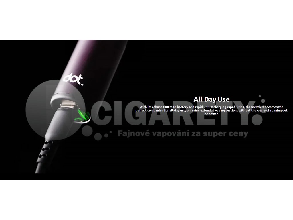 Konstrukce Dotmod Switch R Pod Kit vychází z filozofie maximální jednoduchosti použití spojené s prémiovou kvalitou zpracování. Automatický systém spínání eliminuje potřebu stiskání tlačítek - stačí pouhý potah z náustku a elektronická cigareta okamžitě začne pracovat. Inteligentní regulace výkonu automaticky přizpůsobí parametry podle odporu použité cartridge, čímž zajišťuje optimální výsledky bez nutnosti manuálního nastavování. Robustní baterie s kapacitou 1000mAh poskytuje energii pro celý den intenzivního vapování, zatímco moderní USB-C konektor umožňuje rychlé a pohodlné dobíjení kdekoli. Cartridge s objemem 3ml se vyznačuje praktickým bočním plněním se silikonovou záslepkou pro rychlou a čistou výměnu e-liquidů. Integrovaná mesh hlava s odporem 0,8Ω využívá pokročilou síťkovou konstrukci pro rychlý náběh žhavení a intenzivní chuťové podání. Mechanická regulace přívodu vzduchu ve spodní části umožňuje jemné doladění charakteru potahu od volnějšího až po utaženější MTL styl. Dotmod Switch R Pod Kit tak představuje harmonické spojení tradiční elegance s nejmodernějšími vaping technologiemi.
