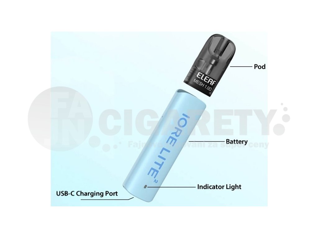 Druhá řada oblíbené nízkonákladové elektronické cigarety s populárním POD systémem od společnosti Eleaf. Integrovaný monočlánek o kapacitě 490mAh disponuje LED indikátorem stavu nabití, automatickým výkonem až 12W a USB-C portem pro rychlé nabíjení. Cartridge (POD) s pohodlným bočním plněním o objemu 2ml obsahuje integrovanou žhavící hlavu Mesh o odporu 1ohm.