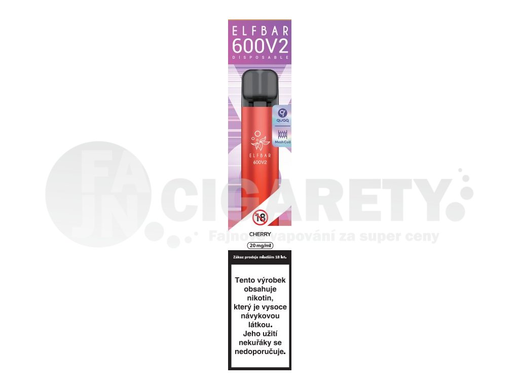 Čerstvě natrhané třešně... Elf Bar 600 V2 je vylepšený model nejoblíbenější ,,jednorázovky´´ na světě, který se prezentuje elegantním celokovovým tělem baterie, inovativním propojením cartridge s baterií, MTL vapováním a hlavně novou Mesh spirálkou QUAQ, která kombinuje ultra jemnou síťovinu s vysoce absorpční bavlnou. Cartridge o objemu 2ml disponuje liquidem SALT o síle nikotinu 20mg.