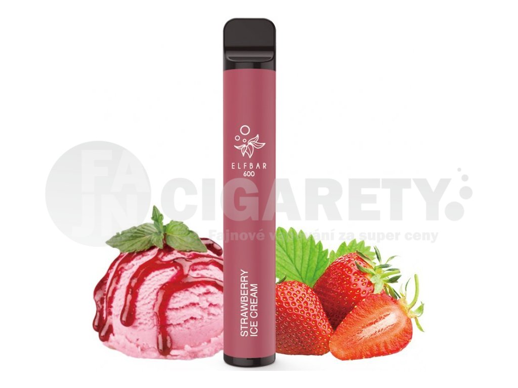 Parádní a chladivá. Taková je pořádně namražená zmrzlina s kousky jahod!... Elf Bar 600 je jednorázová elektronická cigareta s liquidem SALT 20mg s vestavěnou cartridgí o objemu 2ml...