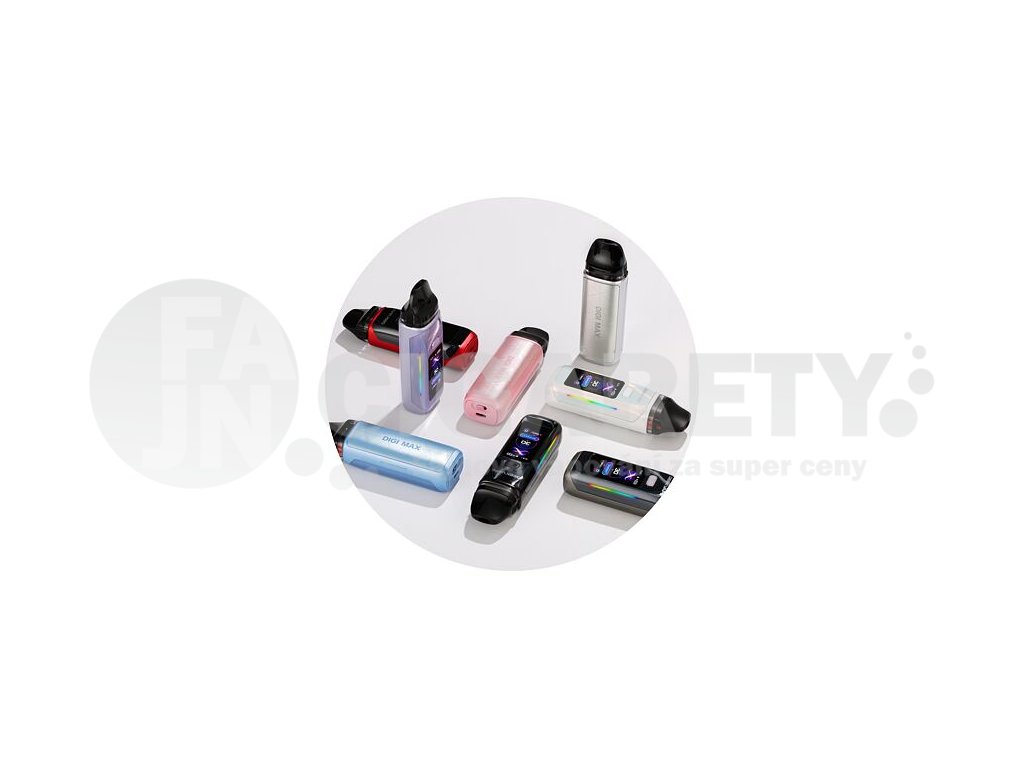 DIGI MAX je nejnovější přírůstek do rodiny e-cigaret renomovaného výrobce GeekVape. Svými parametry se řadí mezi naprostou špičku v POD systémech. Se svou masivní výdrží baterie, velkou kapacitou a rozsáhlými funkcemi je tou správnou volbou, pokud rádi zkoušíte technologické novinky a spokojíte se jen s tím nejlepším. DIGI MAX je vysoce přizpůsobitelný, neuvěřitelně uživatelsky přívětivý, podává vynikající chuť a pohodlně se ovládá díky obrovskému dotykovému displeji. Ať už preferujete jakýkoli styl vapování, tohle je zařízení, které musíte mít!