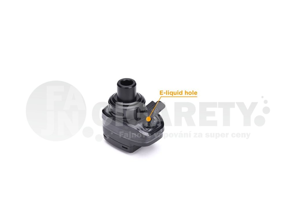 Cartridge ve vrchní části disponuje obrovským objemem 4,5 ml. Nabídne také precizně navržené airflow, které je umístěné ve vrchní části u náustku a umožňuje regulaci. Pečlivě navržená konstrukce celé cartridge potom eliminuje častý vznik nadbytečného kondenzátu během používání a dodá vždy naprosto optimální množství produkované páry. E-liquid do cartridge si vždy doplníte pohodlně přímo ve vrchní části, kde se nachází záslepka plnícího otvoru.