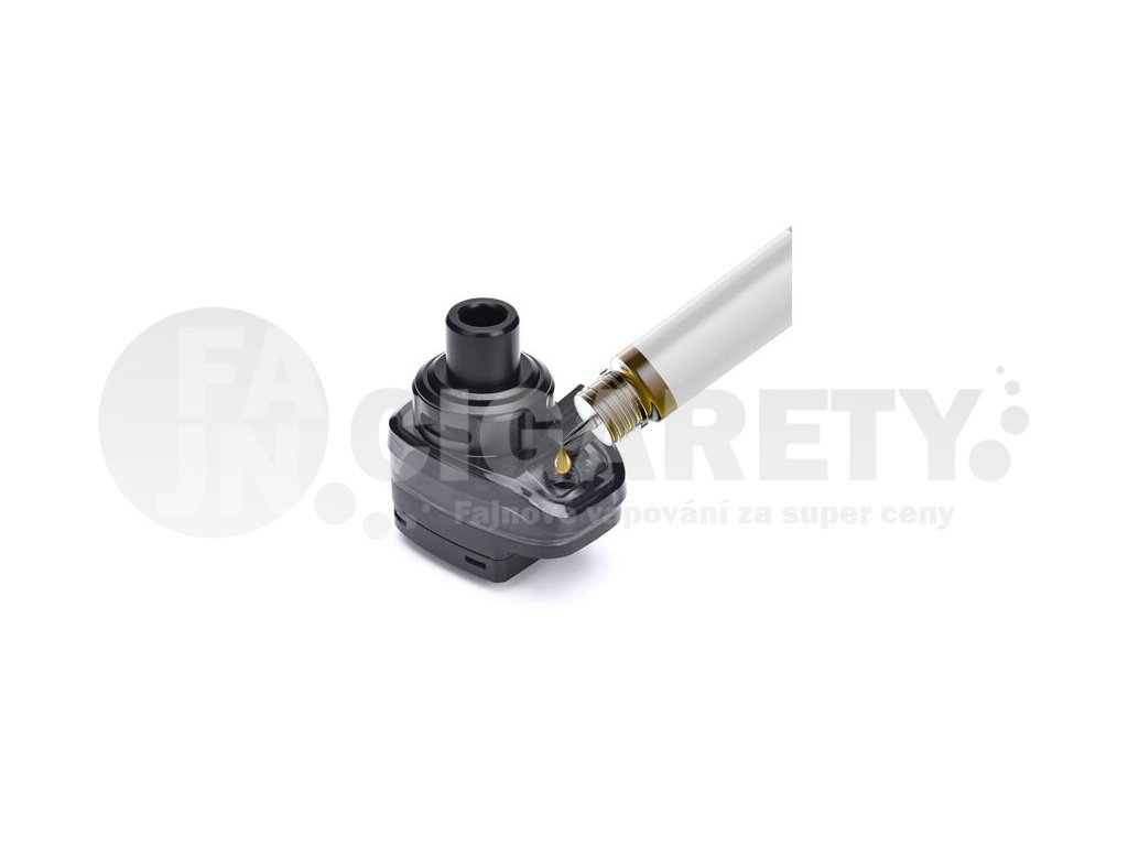 Cartridge ve vrchní části disponuje obrovským objemem 4,5 ml. Nabídne také precizně navržené airflow, které je umístěné ve vrchní části u náustku a umožňuje regulaci. Pečlivě navržená konstrukce celé cartridge potom eliminuje častý vznik nadbytečného kondenzátu během používání a dodá vždy naprosto optimální množství produkované páry. E-liquid do cartridge si vždy doplníte pohodlně přímo ve vrchní části, kde se nachází záslepka plnícího otvoru.